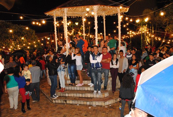 Gravações do comercial na praça da cidade no sábado, dia 5