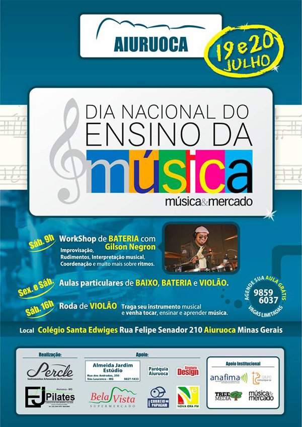 De 19 a 20 de julho. Workshop de Bateria, aulas particulares, roda de violão e muito mais.