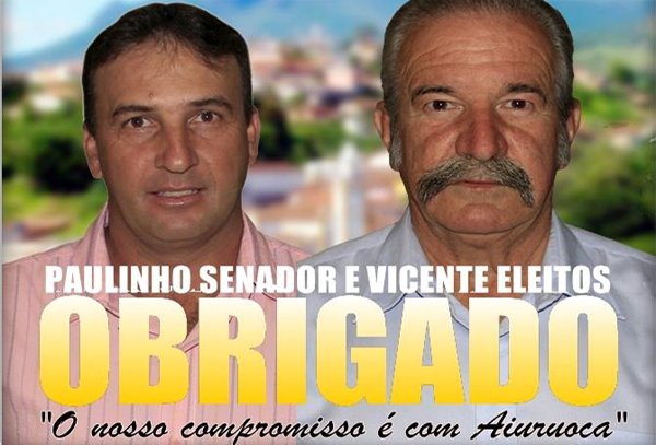 Paulinho Senador: Quero primeiramente manter um bom relacionamento com a sociedade aiuruocana, principalmente pela confiança em mim depositada. Tudo farei para que o desejado progresso venha satisfazer os anseios do nosso povo.