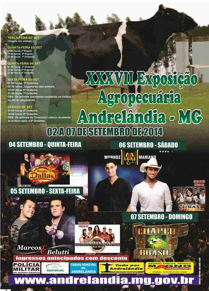 De 2 a 7 de setembro acontece a 37ª Expesição Agropecuária de Andrelândia