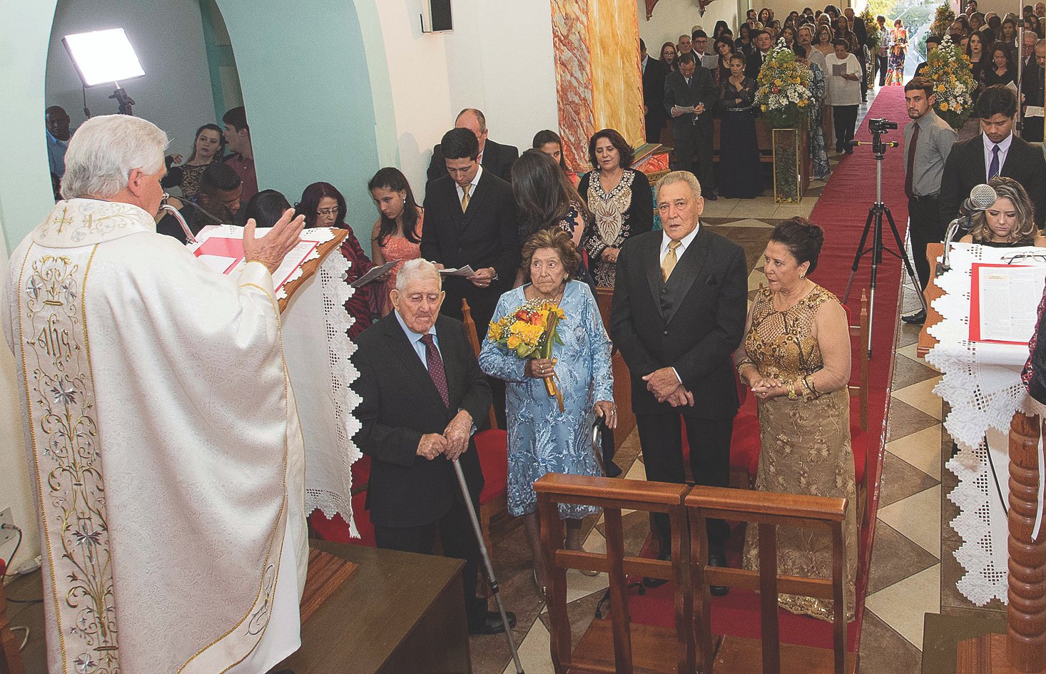 No fim da tarde de sábado, às 17h, aconteceu uma celebração religiosa na Igreja do Rosário, presidida pelo Padre Domingos Sávio, onde as promessas matrimoniais foram renovadas. Um momento especial, onde a emoção brotava nos olhos e corações dos filhos, familiares e amigos.