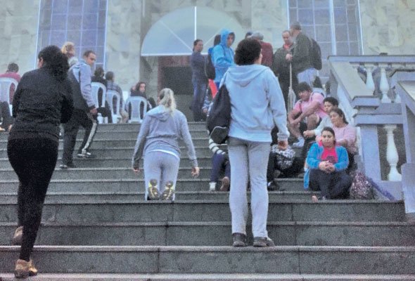 Devota subindo de joelhos a escadaria da igreja Nossa Senhora da Conceição em Baependi - Foto: Fernanda Borges