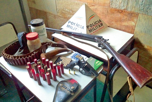 Em 04 de fevereiro, por volta das 8h, a Polícia Militar de Meio Ambiente, após denúncia sobre posse ilegal de arma de fogo, compareceu ao bairro Lage, zona rural de Baependi, para averiguação. No local, sob presença de testemunha, foram realizadas buscas na residência do denunciado, sendo encontrada 01 espingarda cartucheira calibre .28, 20 cartuchos calibre .28, 06 munições intactas calibre 32, 59 espoletas, 01 coldre de couro para revólver, 01 cinto de couro porta cartuchos, 01 frasco contendo pólvora, 01 frasco contendo chumbo e 01 chifre para acondicionar pólvora. Na cozinha da casa, também foi encontrado 01 revólver calibre 32 de numeração raspada. Diante do exposto, os materiais ilícitos foram apreendidos e encaminhados para a Delegacia de Baependi. Não houve prisão em flagrante, pois o autor não se fazia presente no momento da fiscalização.