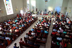 Às 15 horas, os presentes puderam acompanhar a Missa celebrada pelo Bispo Dom Joercio Gonçalves, da Paróquia de Nossa Senhora do Perpétuo Socorro (SP) e concelebrada pelo Pe. Paulo Pereira, da Paróquia de São Pedro Apóstolo - Diocese de Guaxupé (MG).