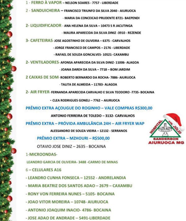 O espírito de solidariedade e gratidão marcou o 13º Natal Premiado do Carnê de Doação do Hospital Dr. Júlio Sanderson, realizado no dia 23 de dezembro, em Aiuruoca. A ação teve como principal objetivo agradecer aos associados que, ao longo de mais um ano, contribuíram para o fortalecimento e o desenvolvimento de uma das instituições de saúde mais tradicionais do Sul de Minas.