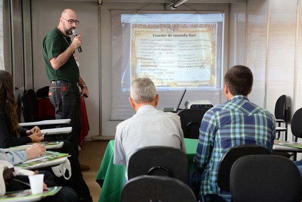 Um dos destaques da programação é a realização de minicursos. Nessa quarta-feira (8), os temas foram café e azeite de qualidade. As práticas de pós-colheita do café como fatores cruciais para a preservação da qualidade do grão adquirida no campo foram focadas pelo pesquisador da EPAMIG Marcelo Malta. Ele destacou formas de manejo, colheita, processamento e secagem específicas para cada tipo de lavoura, complementando informações para os pequenos produtores.