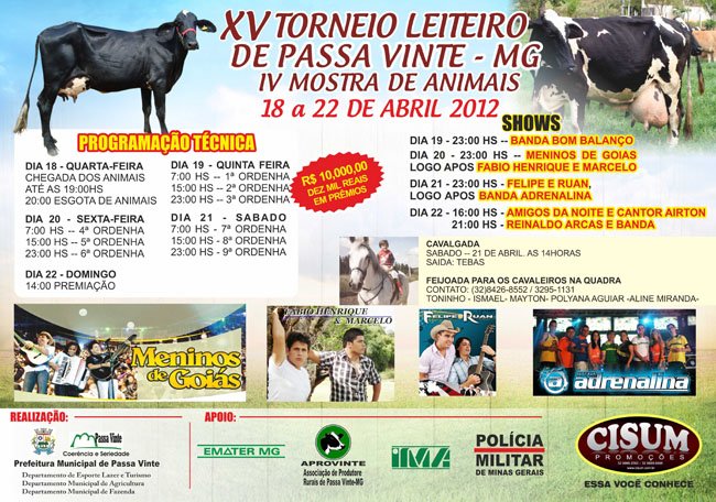 Passa Vinte XV Torneio Leiteiro de Passa Vinte IV Mostra de Animais