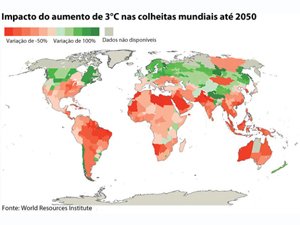 O relatório afirma que no Brasil, maior produtor e exportador de café, o aumento de 3ºC na temperatura irá reduzir as áreas destinadas ao cultivo de café em dois terços, principalmente nos principais estados produtores, como Minas Gerais e São Paulo e poderá extinguir por completo as áreas de cultivo em outros estados.