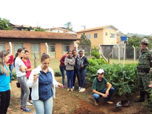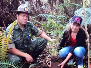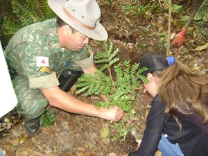 Após a caminhada foi feito o plantio de uma muda de Pau Brasil na horta da Escola e outro na nascente do Sítio da Pedra.