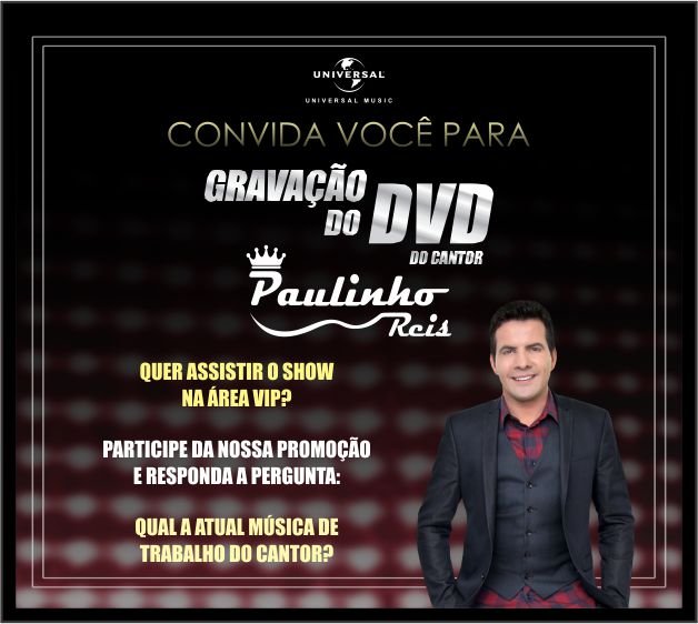 Confira o resultado da promoção da Gravação do DVD do cantor Paulinho Reis que acontecerá amanhã no Centro de Convenções da cidade de Conceição do Rio Verde á partir das 23h.