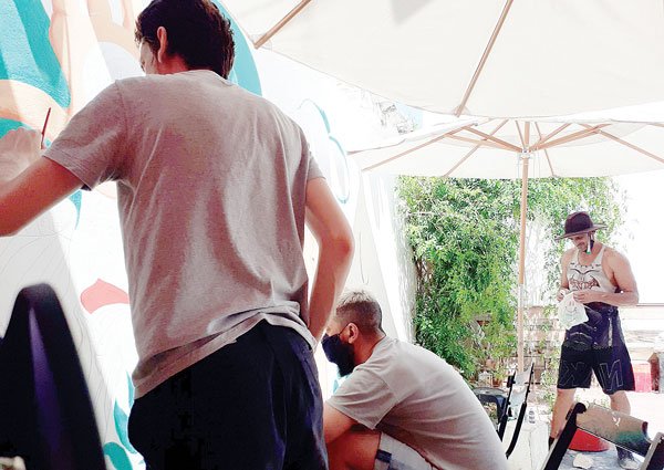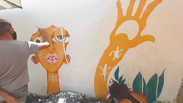 O trabalho foi realizado por uma dupla de pintores, segundo o artista Bio Marques, de Andrelândia “como artista local que fui escolhido para fazer esta obra, fico muito feliz em contribuir com o trabalho, acredito que Gilberto e eu tenhamos tido uma boa parceria, temos boas trocas, aprendi muito com ele. A propósito, a figura central do trabalho é muito interessante, Pachamama, a forma como é desenhada, suas cores fortes, luzes e traços refletem muito em sua originalidade”