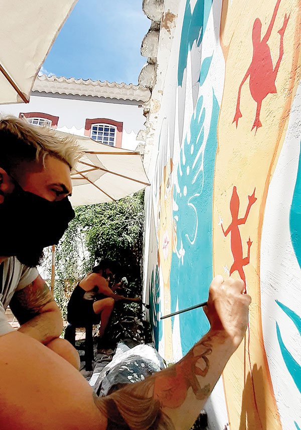 Em meio à pandemia, num momento em que nosso imaginário encontra-se de certa forma sufocado, um coletivo de artistas da zona da Mata mineira decidiu aventurar-se e trazer cores e novas formas para a visualidade de Andrelândia, criando assim o projeto Street Art pós-colonial, uma manifestação pública que registre histórias da origem de nossa terra de maneira livre, inventiva e propositiva de novos ambientes visuais na esfera pública. O grupo iniciou seus trabalhos em Janeiro de 2021 por meio de uma pintura mural ao ar livre na lateral do casarão colonial da Pousada Estalagem do Porto. Segundo o secretário de Cultura, Guilherme Landim, trata-se de um trabalho de suma importância para uma nova geração de artistas, que estão trocando modos de pensar a arte urbana, trazendo conceitos peculiares e uma identidade visual harmônica que traz uma história: “tornando a cidade uma galeria de arte pública e o mais importante é o fato de que a pintura traz uma forte relação com a arquitetura do espaço, interferindo e trazendo mais valor a este ambiente. Acredito que seja muito importante para o patrimônio da cidade manter sua originalidade, mas também se reconfigurar, trazendo encantamentos para para seu povo. Cuidamos da cidade como nosso jardim, habitamos espaços de beleza, dessa forma, precisamos que a população nos ajude a trazer novas configurações visuais de nossos lugares de vivência”.