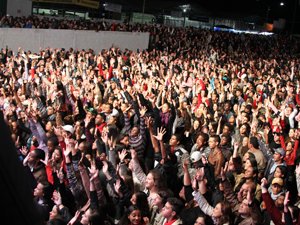| Amigos e muita animação do público | Milhares de pessoas cantam junto |