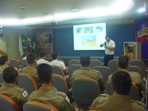 A primeira palestra, destinada aos comandantes das 22 cidades que compõem a área do 57º BPM, foi proferida por Marcos Venício Silva Fonseca, membro da equipe do setor de epidemiologia de São Lourenço. O profissional orientou os presentes sobre prevenção, foco e a situação da dengue no município.
