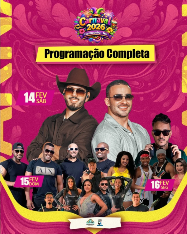 Por fim, a terça-feira, 17 de fevereiro, encerra o ciclo carnavalesco com o Blocão às 17h e a Banda Dubandú às 18h30, culminando no grande show do grupo Só Pra Contrariar às 20h, com a Banda Fator Zero selando a despedida da folia às 22h.