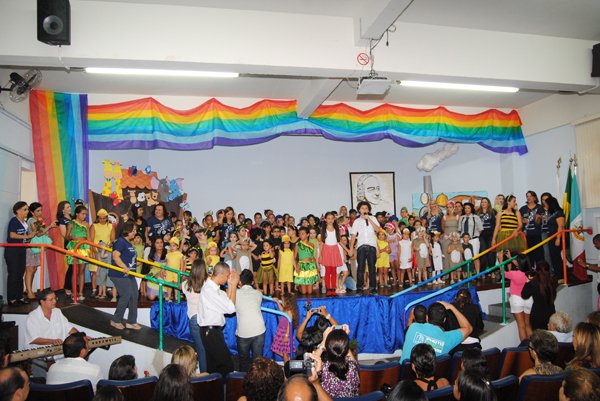 O que os pais, amigos e familiares puderam ver foi muita poesia, humor, alegria, romantismo e grande criatividade. Contamos ainda com a participação do pianista Chico Botelho, que abrilhantou a peça com sua grande técnica ao piano no encerramento, tocando “Eu sei que vou te amar” e “Garota de Ipanema”, cantada em espanhol e português pelas crianças.