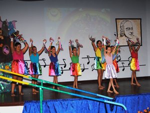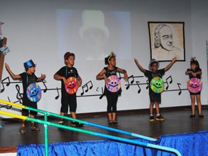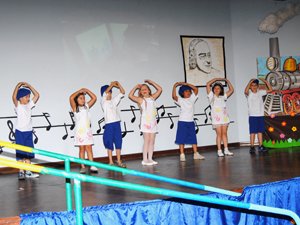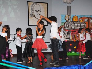 A peça teatral “O Poeta Aprendiz”, cujo texto foi criado por Rosa Bortoni, apresentou três atos distintos. O primeiro foi uma viagem no tempo, desde Villa-Lobos, com o Trem Caipira, trazendo um mosaico de obras dos grandes compositores brasileiros, tendo como ápice as músicas de Vinícius de Moraes (2º, 3º, 5º anos e III Fase da Educação Infantil).