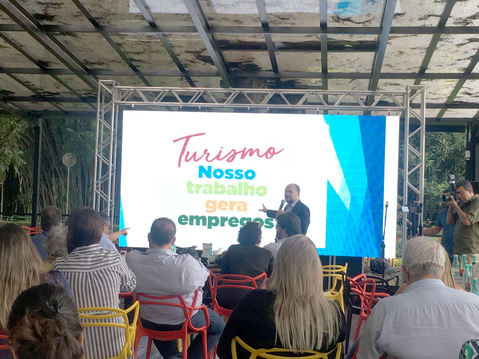 Ainda houve uma palestra sobre a internacionalização do turismo, ministrada pelo Coordenador Geral de Administração e Diretor de Gestão Interna Interino da Embratur, Thiago Zanini Godinho.