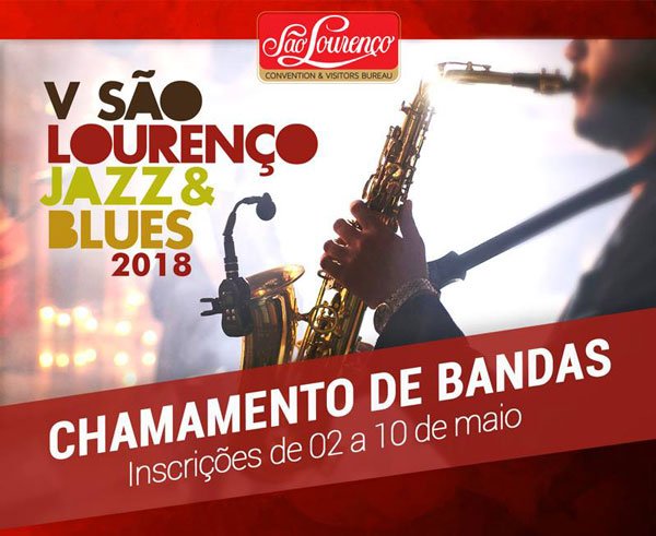 As bandas que quiserem se apresentar no V Festival de Jazz e Blues de São Lourenço já podem realizar as inscrições. As inscrições terão início no dia 2 de maio e seguem até o dia 10 do mesmo mês. O evento acontecerá no estacionamento do Parque das Águas entre os dias 12 e 14 de junho deste ano.