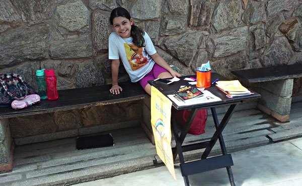 Minha estreia na literatura foi com o livro “Sonhos de uma sapeca levada da breca”. Ele nasceu porque desde o primeiro ano na escola eu escrevia e desenhava demais nos meus cadernos, inclusive nas capas. No primeiro ano, a escola onde estudei não gostava de jeito nenhum. Mas, quando entrei no segundo ano, na Escola Municipal Ismael Junqueira de Souza, tive a melhor professora de todas: tia Luciana. Enérgica sim, mas nunca me chamou a atenção por escrever e desenhar durante a aula e nem falou que minhas artes eram rabisco. Foi então, quando ela e uma amiga da minha mãe chamaram a atenção para as histórias que eu escrevia. Elas falaram que isso daria um bom livro. Foi aí que comecei a importunar a minha mãe para fazer um livro. O livro tem 10 poemas (muitas pessoas dizem que tem muita filosofia neles, mas eu não sei de nada disso ainda), uma oração e uma história. Cada página tem uma ilustração que eu mesma fiz. E a editora deu a ideia de fazer o livro para colorir porque estava na moda e ainda ficaria mais barato para minha mãe. A frase que mais faz sucesso no livro é “A gente é diferente e isso nos torna especial porque se a gente fosse igual não seria nada legal”. Ela faz parte do poema “A Vida”. Já teve várias crianças que pediram para imprimir esta página, eu já fui nas escolas ler este poema para as crianças (inclusive vou no CICM no próximo dia 22/6 às 16h contar essa história para uma turminha de segundo ano). Professores, diretores de escola e palestrantes já me pediram para imprimir e usar essa frase e também o grupo de escoteiros já fez uma roda e falaram sobre ela. Muito legal mesmo. Ela fala sobre aceitar as diferenças de cada um. Fico muito feliz.