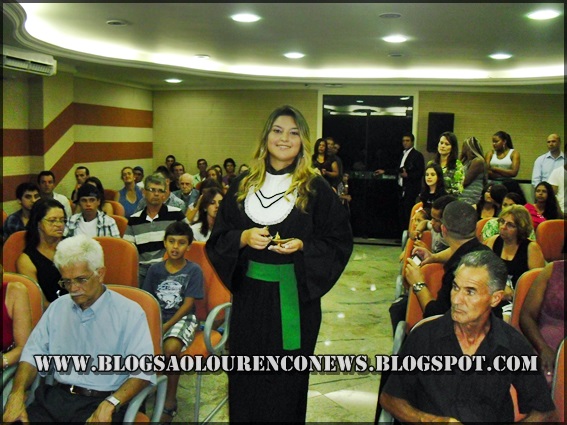 Na ordem do cerimonial houve o discurso da representante da turma Kelli que lembrou a todos das dificuldades e alegrias que o curso proporcionou preparando-os para o mercado de trabalho que agora estão aptos a enfrentar e disputar de igual para igual com qualquer outro profissional. Ela enalteceu ainda a qualidade do curso e os bons professores que tiveram.