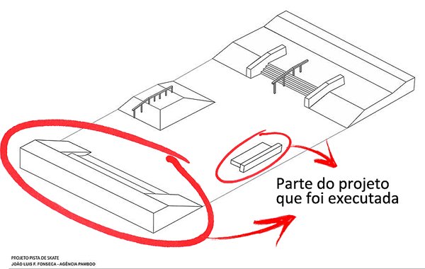 “Iam construir uma pista de skate toda errada, sem utilidade nenhuma para nossa modalidade. Marcamos uma reunião com o prefeito e ele me garantiu que se mudássemos o projeto sem alterar a área a pista seria feita, inteira. Fizemos outro projeto, entregamos pra ele e foi aprovado” explica o skatista Gabriel Cristiano.