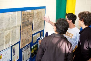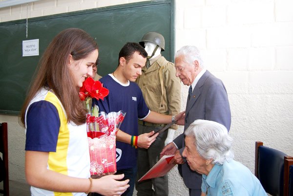 Os alunos do Colégio Objetivo também ficaram bastante comovidos após a Aula Viva. Tiraram muitas fotos com os ex-combatentes e realizaram uma homenagem aos integrantes do Projeto. “Foi fantástico. Gostei muito da experiência”, relatou um aluno do 9º ano enquanto via a exposição de materiais usados na Guerra. “Nós adoramos o Projeto, foi muito bem feito e muito organizado”, sublinha Fátima Cardoso Mendes, diretora do Colégio e acrescenta: “É história viva para essa nova geração. Uma excelente iniciativa”.