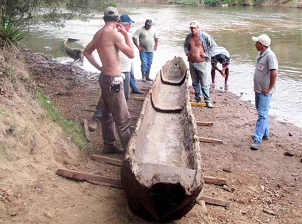Com 9,1 metros de comprimento, a canoa foi encontrada de maneira fortuita pelo garoto Douglas Fonseca, de 09 anos, quando nadava. O objeto, que corria risco de destruição, foi resgatado do rio por membros e colaboradores do NPA e transferido para o Parque Arqueológico da Serra de Santo Antônio, onde se encontra.