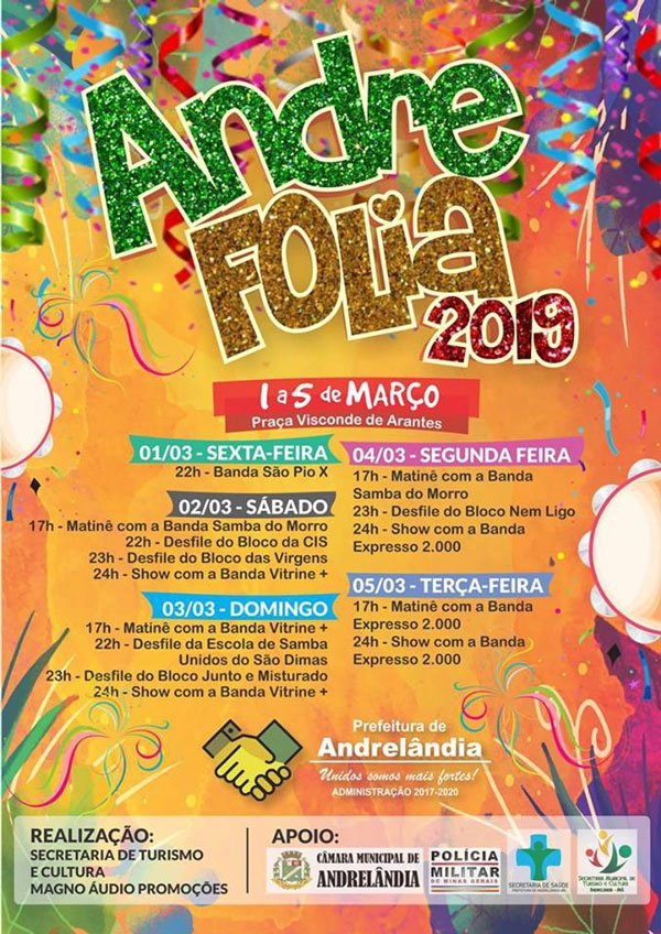 Os foliões que costumam curtir o carnaval em Andrelândia já podem se programar para a grande festa.
