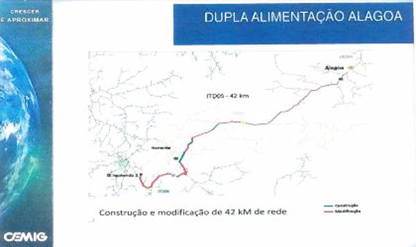 Cabe ressaltar que os municípios de Seritinga, Carvalhos e São Vicente de Minas também serão diretamente beneficiados com as obras, que trarão grande confiabilidade e flexibilidade ao Sistema de fornecimento de energia elétrica à região. O valor investido é superior a 2,5 milhões de reais, sendo R$1.535.782,38 em Alagoa.