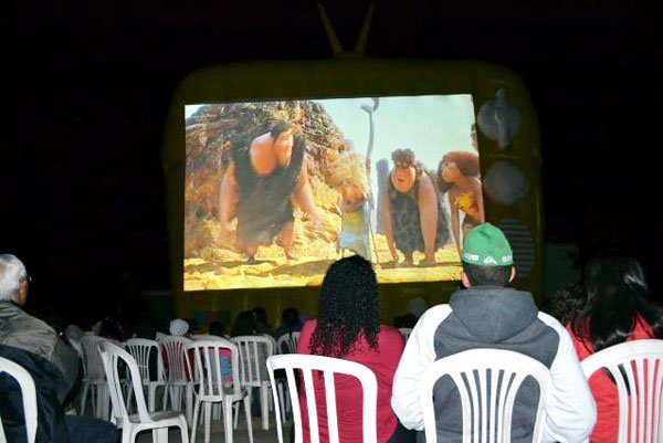 Na quinta-feira (13), o projeto Cine Cidade foi realizado no bairro Boa Vista, com a presença de toda a comunidade. Um telão foi instalado e a população pôde assistir ao filme de animação “Os Croods”, uma comédia pré-histórica que acompanha a atrapalhada e divertida aventura da primeira família que já habitou a Terra.