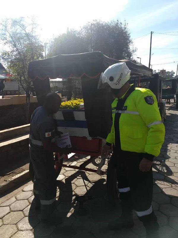 A SlTrans realizou a colocação de placas informativas nas charretes para identificação do número máximo de passageiros permitido por passeio.